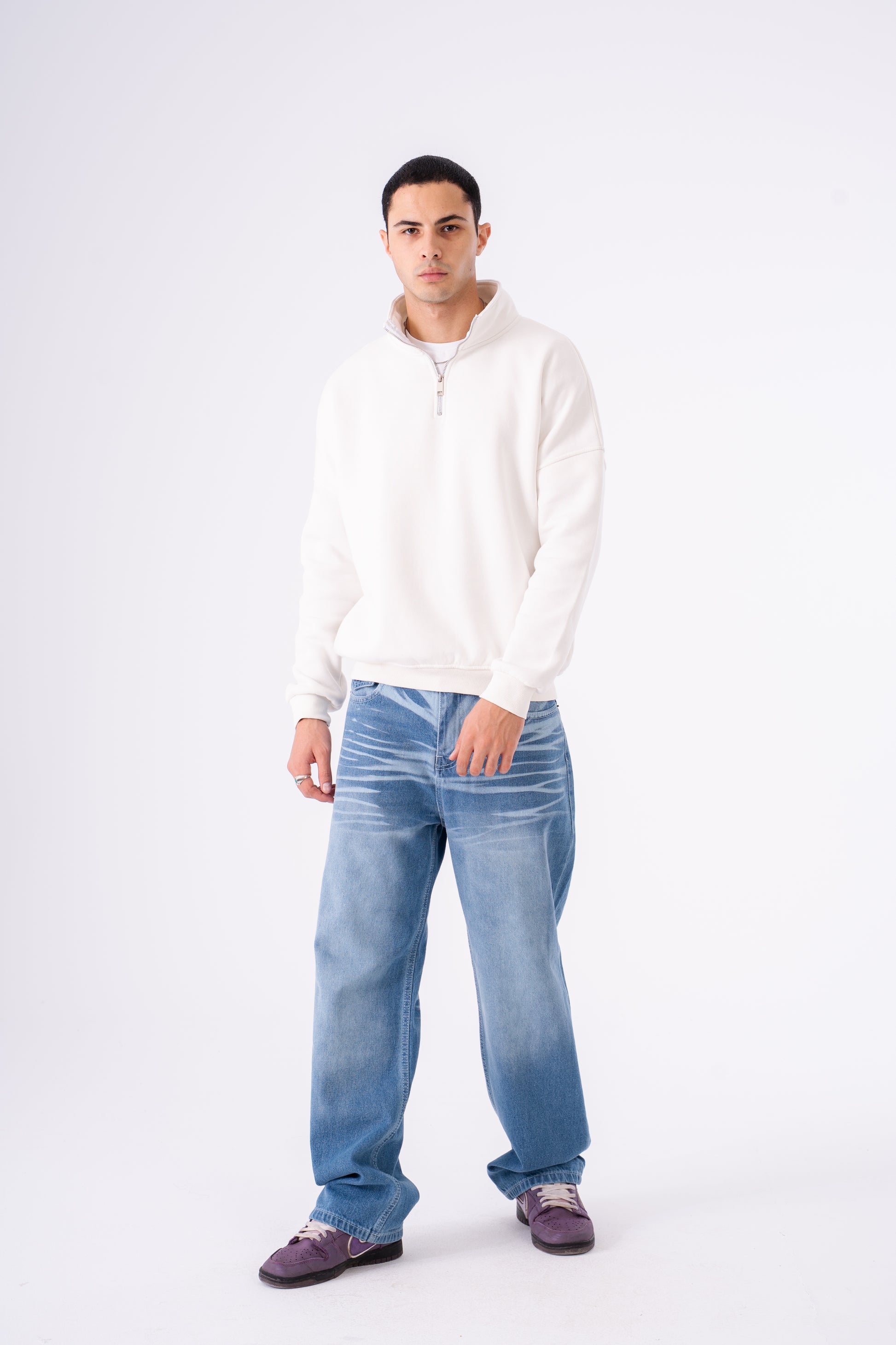 ● Baggy and relaxed from hip to hem ● Mid-rise waist with a laid-back feel ● Full-length leg with a soft drape and stack ● Spacious fit through thighs and calves ● True to size for a loose fit
