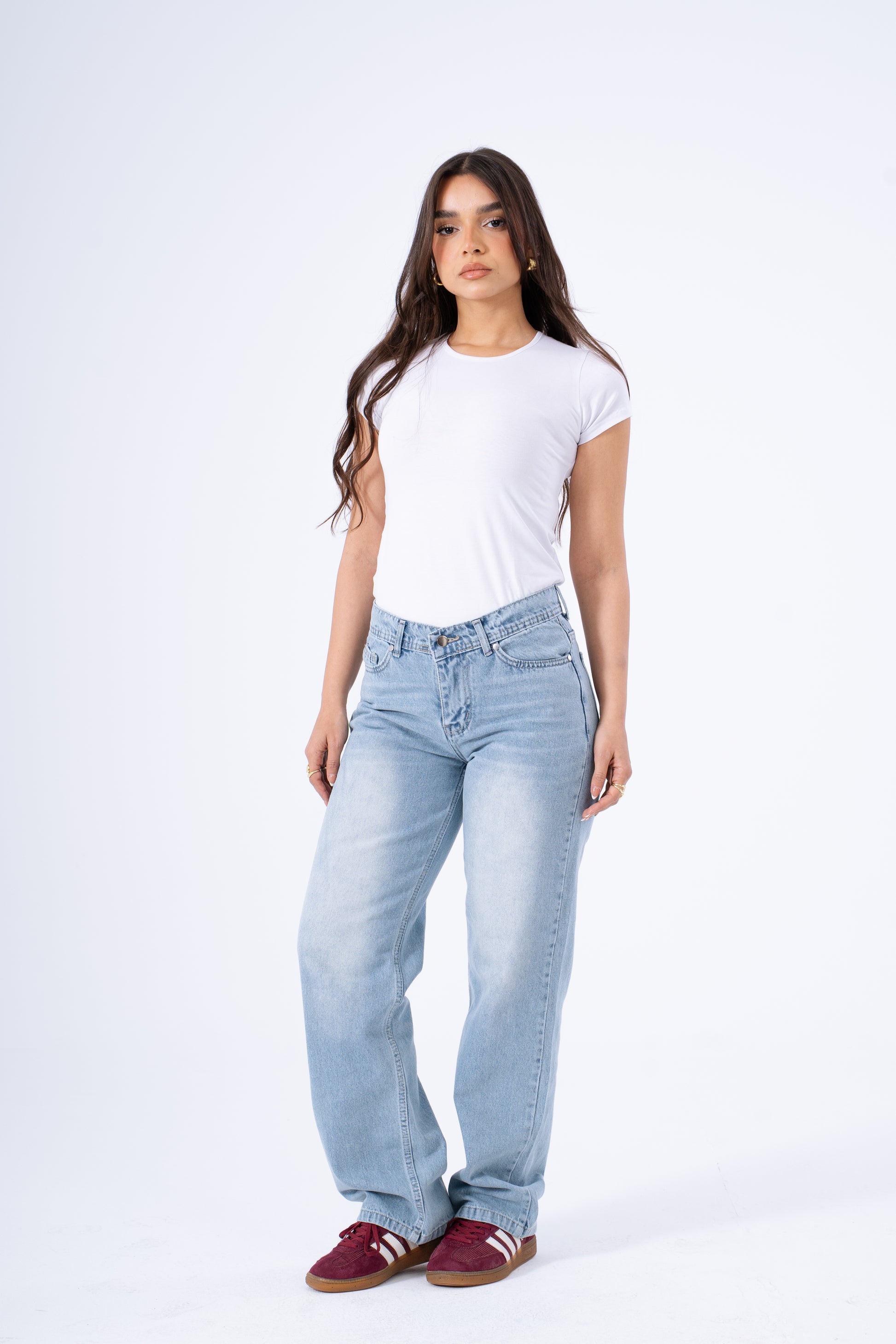 Pure Denim Simplicity Elevate your "clean girl" aesthetic with the Sky Romance Straight Jeans.